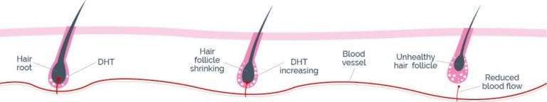 Hair follicles are nourished by your blood, so if you have poor circulation to your scalp your hair isn’t getting the goodies it needs, and like any of us deprived of our favourite meal it loses the will to live and moves on. This is where our powerhouse team of Biotin and Niacin come to the rescue. Proven to increase blood flow straight to the follicle to ensure all the nutrients are going straight to the source. We apply it straight to the scalp, not through your body with harmful medication. Conclusion, hungry shrunken hair follicles don’t stick around for long.